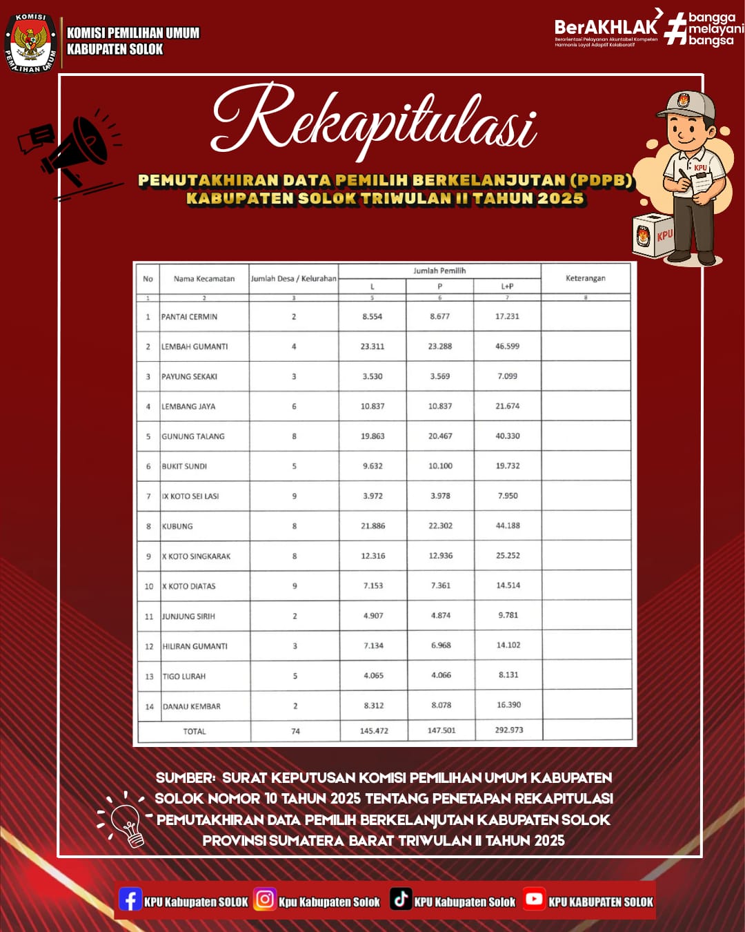 REKAPITULASI PDPB KPU KABUPATEN SOLOK TRIWULAN II TAHUN 2025 DAN SEBARAN PER KECAMATAN