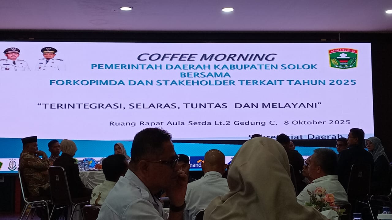 Dalam Sambutan Ketua DPRD Kabupaten Solok berharap momentum Coffee Morning menjadi sarana komunikasi dan koordinasi lintas sektor dalam mewujudkan tata kelola pemerintahan yang efektif dan responsif terhadap kebutuhan masyarakat.
