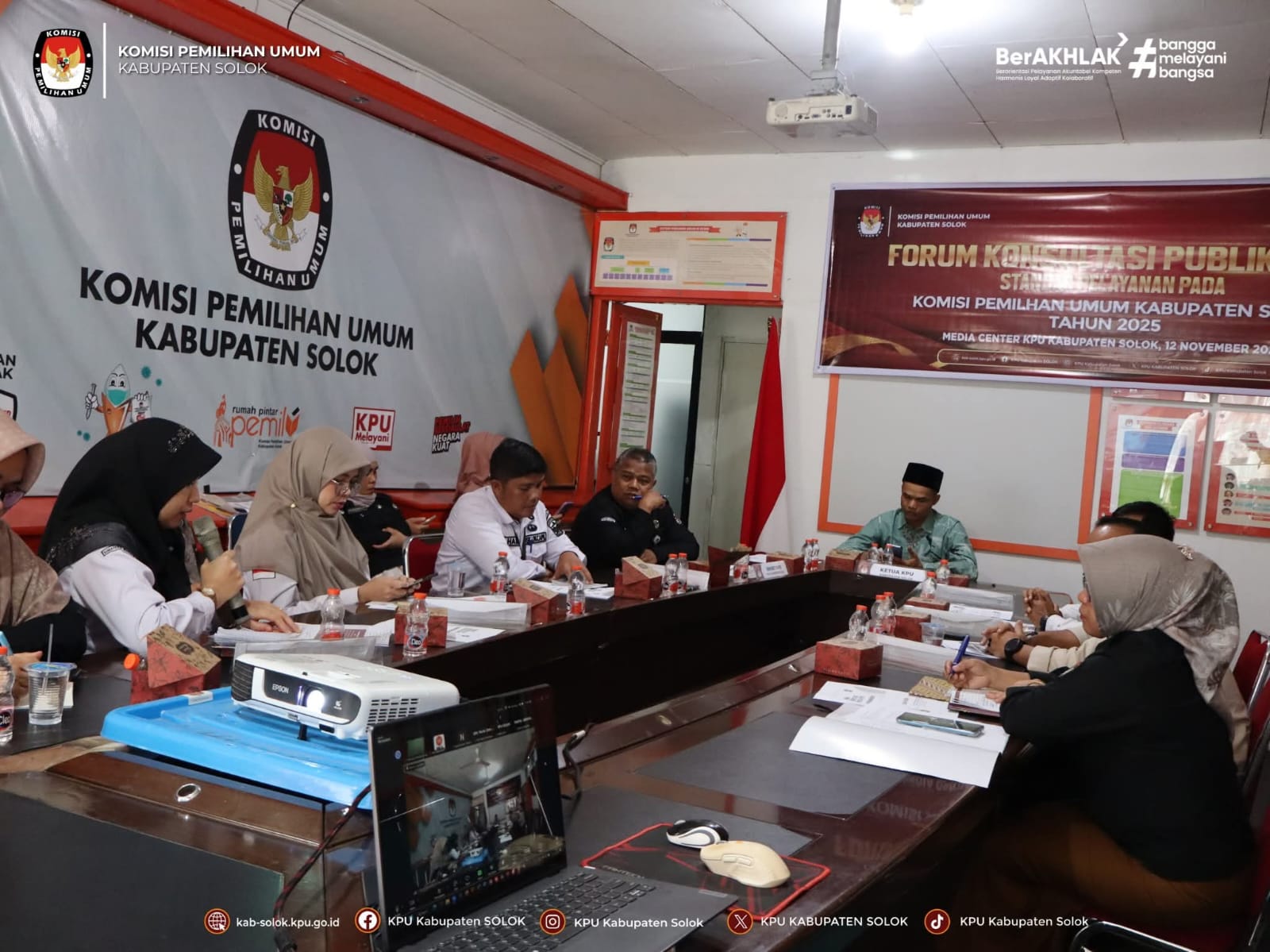 Koto Baru, KPU Kabupaten Solok gelar Forum Konsultasi Publik (FKP) terkait Standar Pelayanan yang dilaksanakan pada KPU Kabupaten Solok, Rabu (12/11) bertempat di Media center.