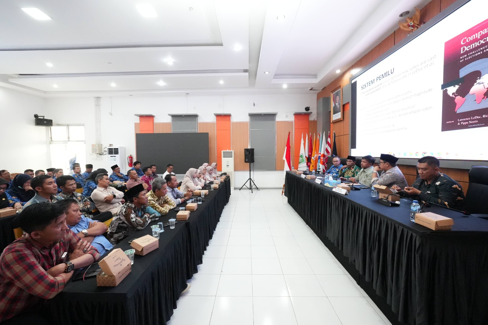 Tema Diskusi adalah "Implikasi Pemisahan Dua Fase Pemilu sebagai Tindak Lanjut Putusan Mahkamah Konstitusi Nomor 135/PUU-XXII/2024 terhadap Manajemen dan Desain Sistem Pemilu" menghadirkan narasumber Anggota KPU RI, Idham Holik.