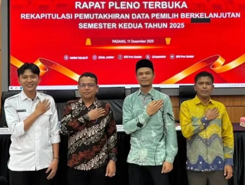 #TemanPemilih, KPU Kabupaten Solok hadiri Rapat Pleno Terbuka Rekapitulasi Daftar Pemilih Berkelanjutan Semester II Tahun 2025 yang diselenggarakan oleh KPU provinsi Sumatera Barat pada Kamis, 11 Desember 2025 di Aula KPU Provinsi Sumatera Barat.