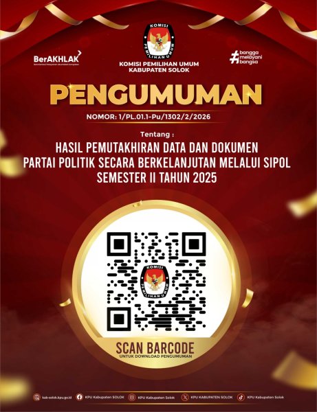 #TemanPemilih, Berikut Pengumuman Hasil Pemutakhiran Data dan Dokumen Partai Politik Secara Berkelanjutan Melalui Sipol Semester II Tahun 2025.