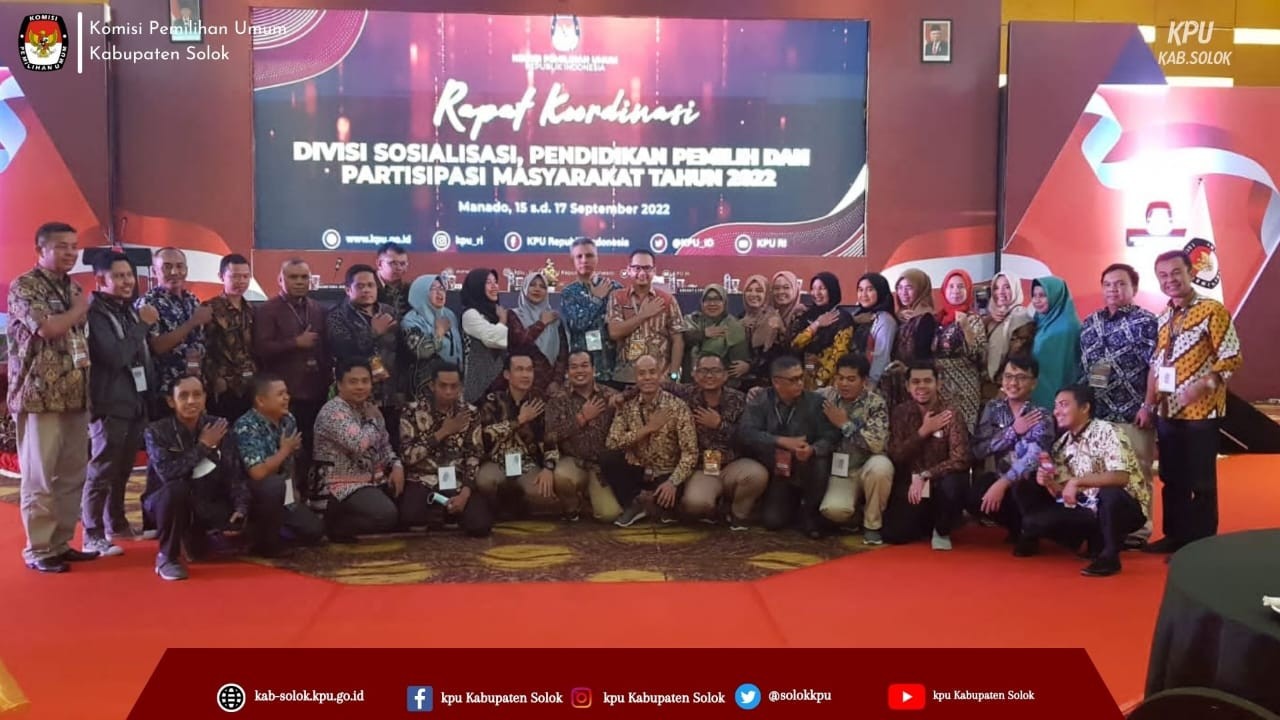 Sebagai langkah dalam menetapkan arah kebijakan KPU dalam mendorong kualitas dan kuantitas partisipasi masyakat pada Pemilu tahun 2024, KPU RI melaksanakan kegiatan Rapat Koordinasi Divisi Sosialisasi, Pendidikan Pemilih, dan Partisipasi Masyarakat (Sosdiklih Parmas) Tahun 2022 yang berlangsung di Manado, Jumat (15-17/09/2022). Kegiatan ini di hadiri oleh lebih kurang 1.007 peserta KPU Provinsi/KIP Aceh dan KPU/KIP Kabupaten/Kota se-Indonesia yang terdiri dari Anggota dan kepala subbagian yang membidangi tugas Sosdiklih Parmas.