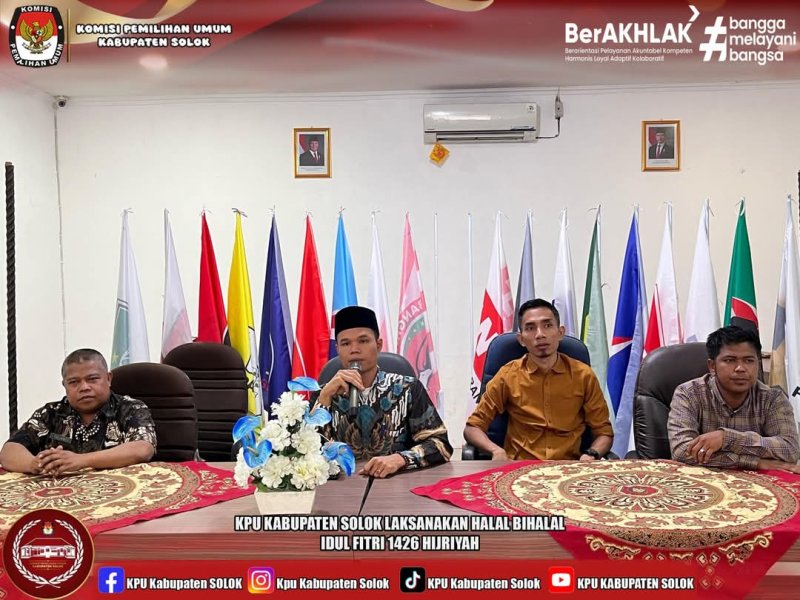 KPU Kabupaten Solok melaksanakan halal bihalal dalam suasana Idul Fitri 1446 Hijriyah, Jum'at 11 April 2025 bertempat di Aula KPU Kabupaten Solok.