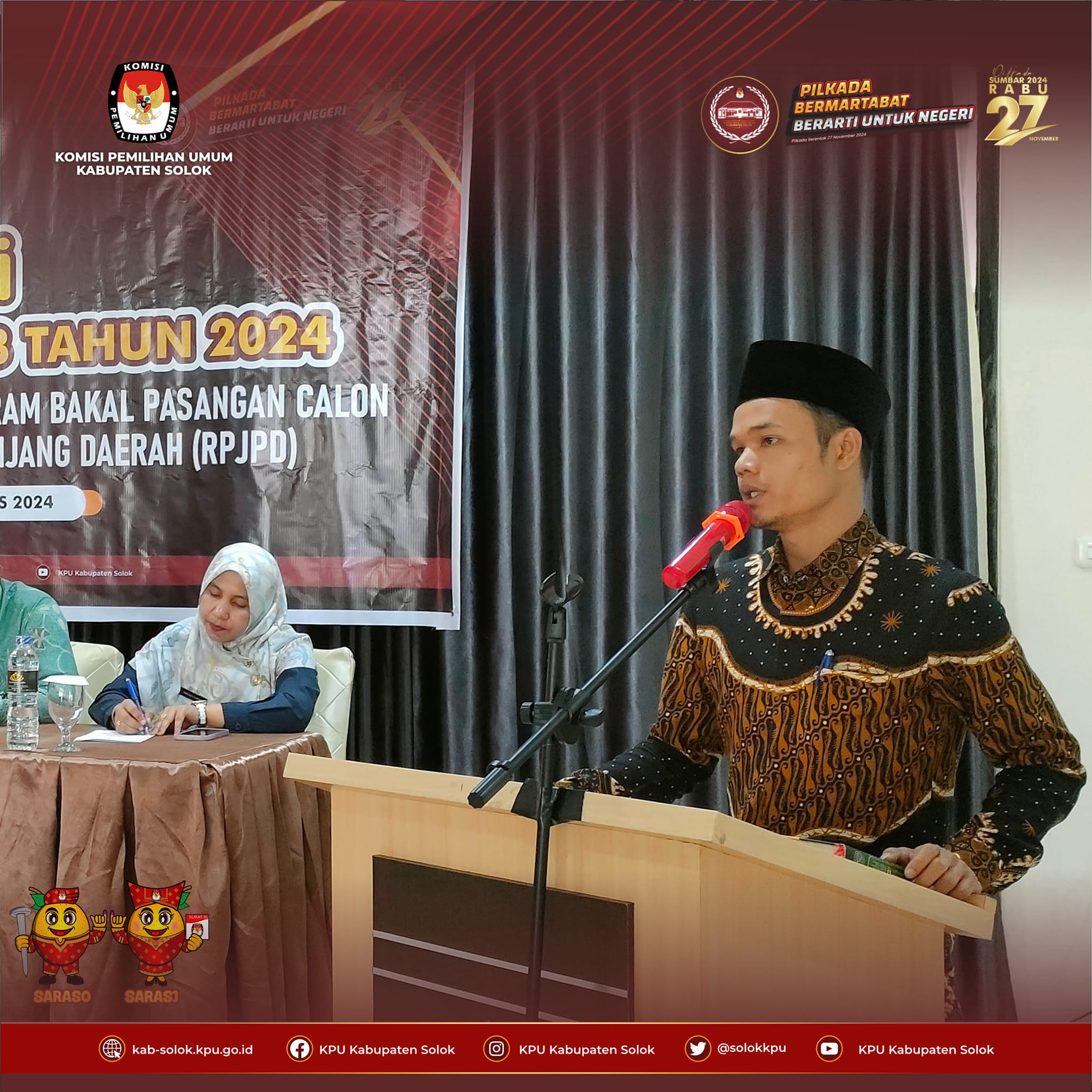 #TemanPemilih, KPU Kabupaten Solok melaksanakan Sosialisasi Peraturan KPU Nomor 8 Tahun 2024 dan Sosialisasi Penyusunan Visi Misi dan Program Bakal Pasangan Calon Sesuai Rencana Pembangunan Jangka Panjang Daerah (RPJPD) bertempat Aula Solok Premier Hotel 11 Agustus 2024.