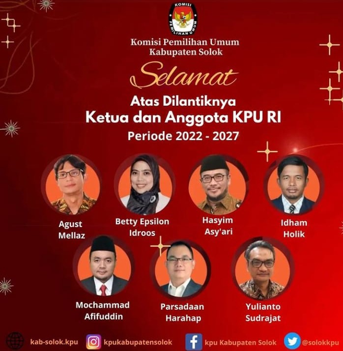 Segenap Keluarga KPU Kab. Solok mengucapkan selamat atas Dilantiknya Anggota KPU RI Periode 2022-2027..