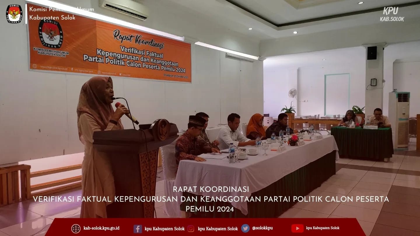 KPU Kabupaten Solok laksanakan Rapat Koordinasi Verifikasi Faktual Kepengurusan dan Keanggotaan Partai Politik