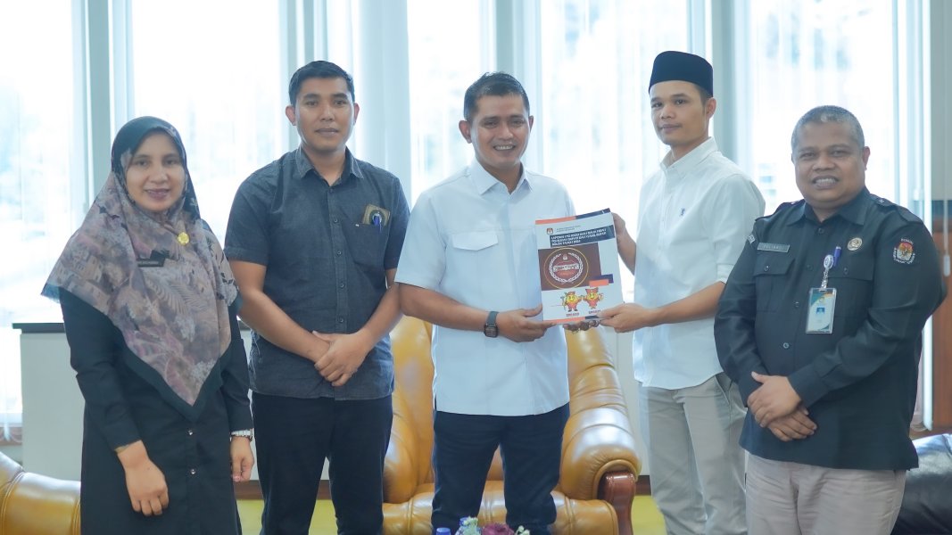Ketua KPU Kabupaten Solok Hasbullah Alqomar didampingi Anggota Despa Wandri, Sekretaris Yuliardi dan Kasubbag, serahkan Laporan Realisasi Dana Hibah Pemilihan Bupati dan Wakil Bupati Solok Tahun 2024, Rabu 16 April 2025.