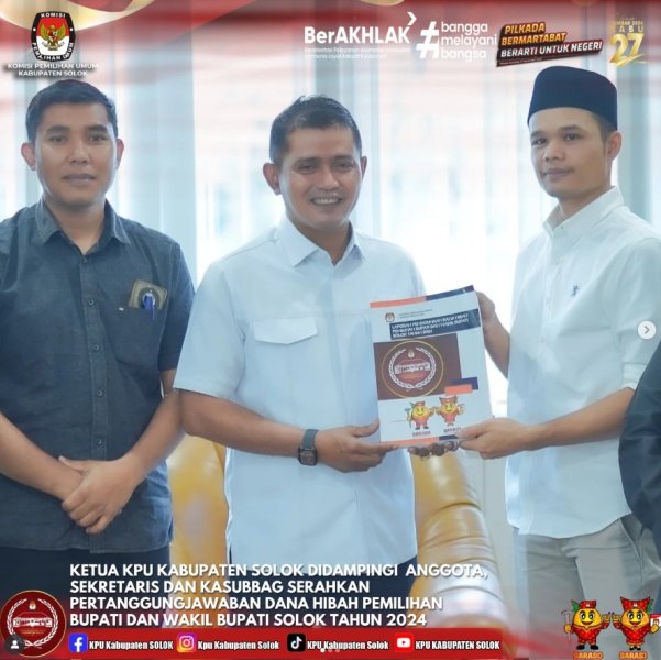Penyerahan Pertanggungjawaban Dana Hibah Pemilihan Bupati Dan Wakil Bupati Solok Tahun 2024