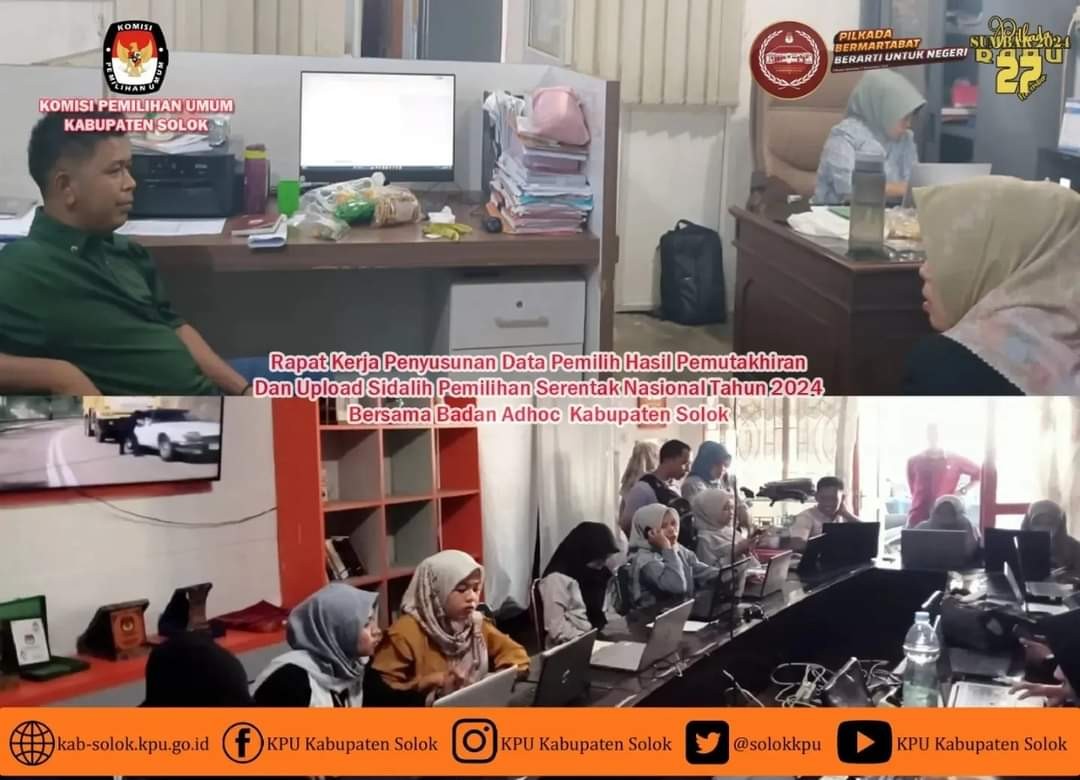 #Temanpemilih, KPU Kabupaten Solok mengadakan Rapat Kerja Penyusunan Data Pemilih Hasil Pemutakhiran dan Upload Sidalih Pemilihan Serentak Nasional Tahun 2024 bersama dengan Badan Adhoc.