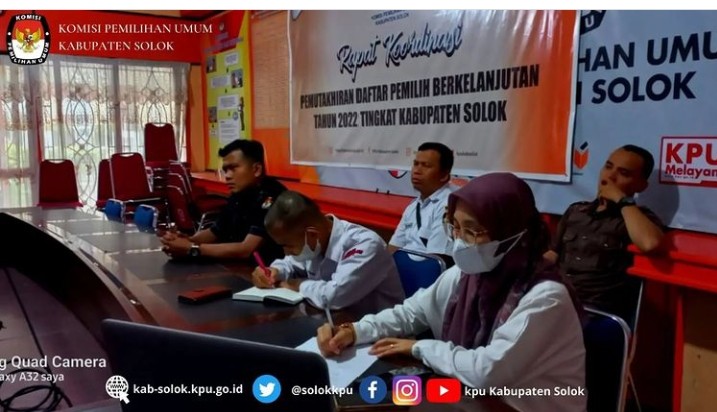 Sekretaris KPU Kabupaten Solok Efrizon, S.H, M.Si besama Kasubbag KUL Giffa Lania, SH dan Satuan Pengamanan KPU Kabupaten Solok mengikuti kegiatan rapat konsolidasi sistem pengamanan dalam KPU Provinsi dan KPU Kabupaten/Kota se Sumatera Barat melalui vidio zoom meeting (18/04/2022).