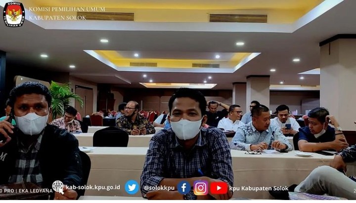 Anggota KPU Kabupaten Solok Divisi Program Data dan Informasi Jons Manedi, S.Pd, MA menghadiri kegiatan rapat koordinasi pengawasan pemutakhiran data pemilih berkelanjutan yang dilaksanakan oleh Bawaslu Provinsi Sumatera Barat di Grand Rocky Hotel Bukittinggi ( 21/04/2022), kegiatan ini dihadiri oleh seluruh divisi program data dan informasi KPU Kabupaten/Kota se- Sumatera Barat
