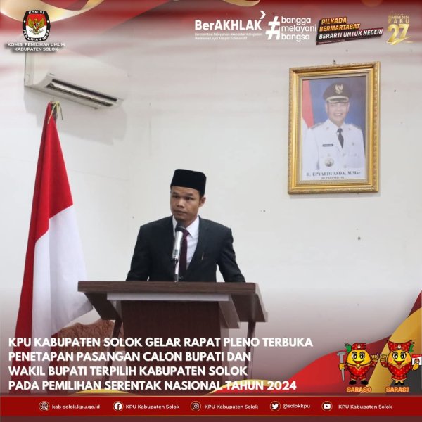 Rapat Pleno Terbuka Penetapan Pasangan Calon Terpilih Pemilihan Bupati dan Wakil Bupati Solok Tahun 2024