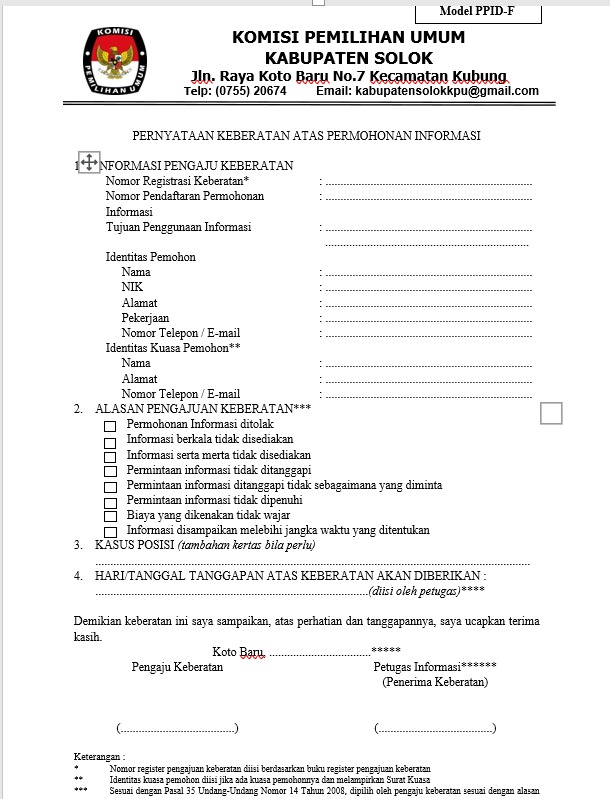 Form Keberatan