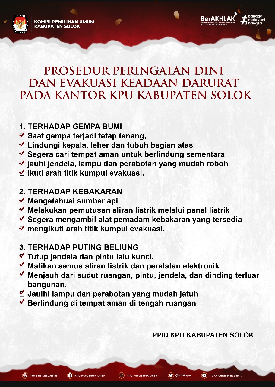 1. Datang langsung ke Kantor KPU Kabupaten Solok, Jl. Raya Koto Baru Nomor 7 Kecamatan Kubung, Kabupaten Solok.