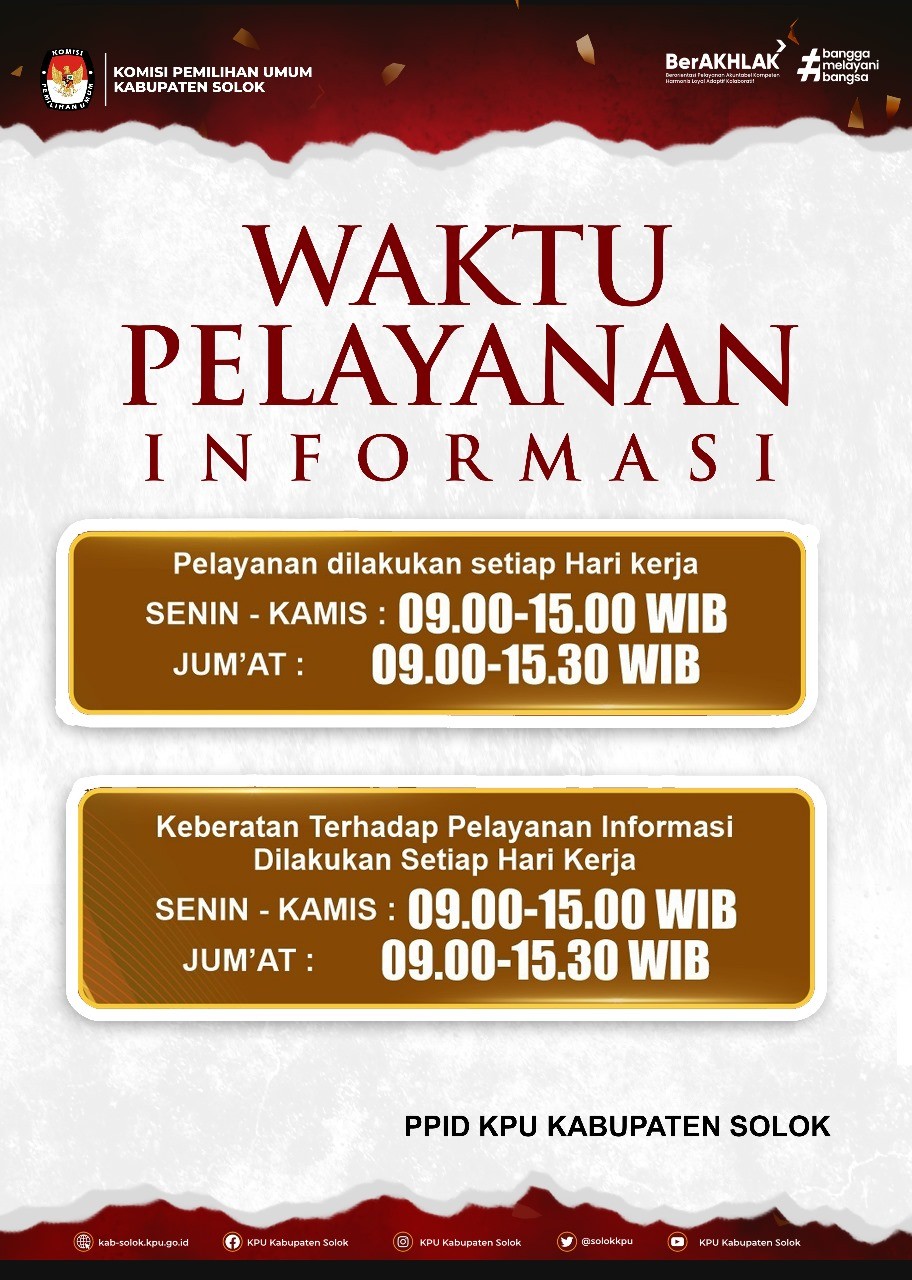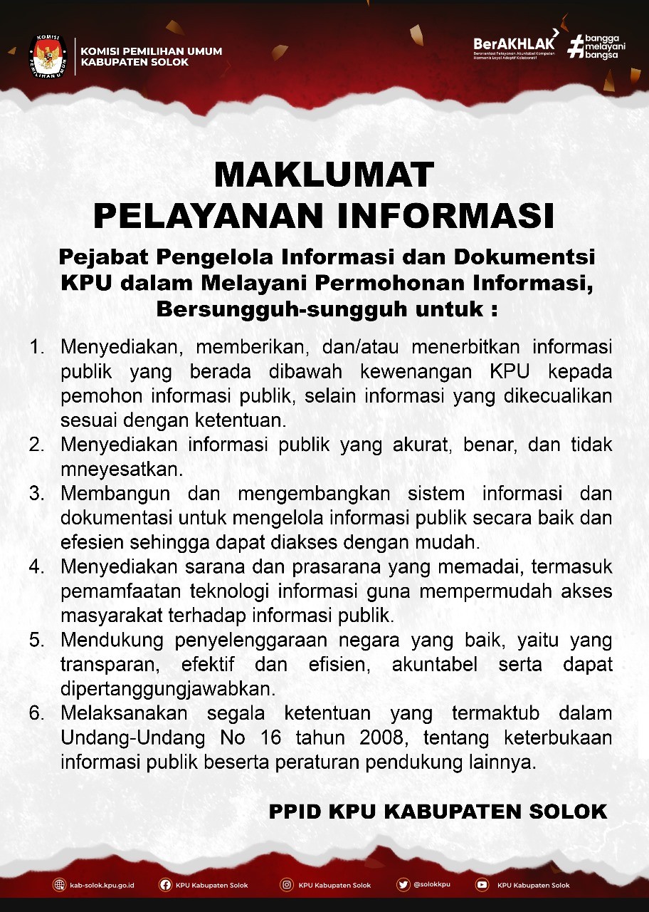 KPU Kabupaten Solok mengumumkan Informasi Publik, secara berkala, setiap saat dan serta merta.