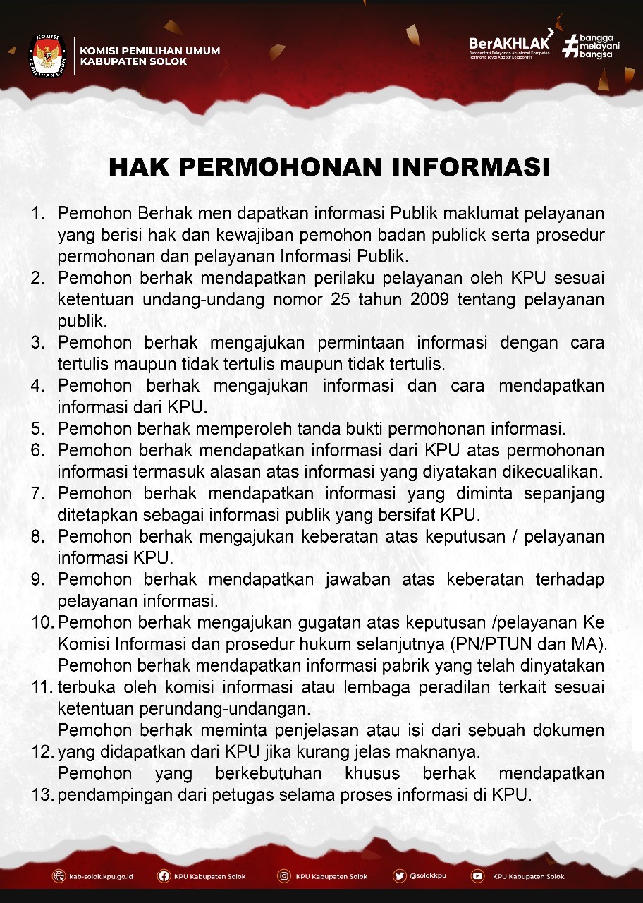 Berikut merupakan formulir permohonan informasi : Formulir Permohonan Informasi Publik KPU Kabupaten Solok